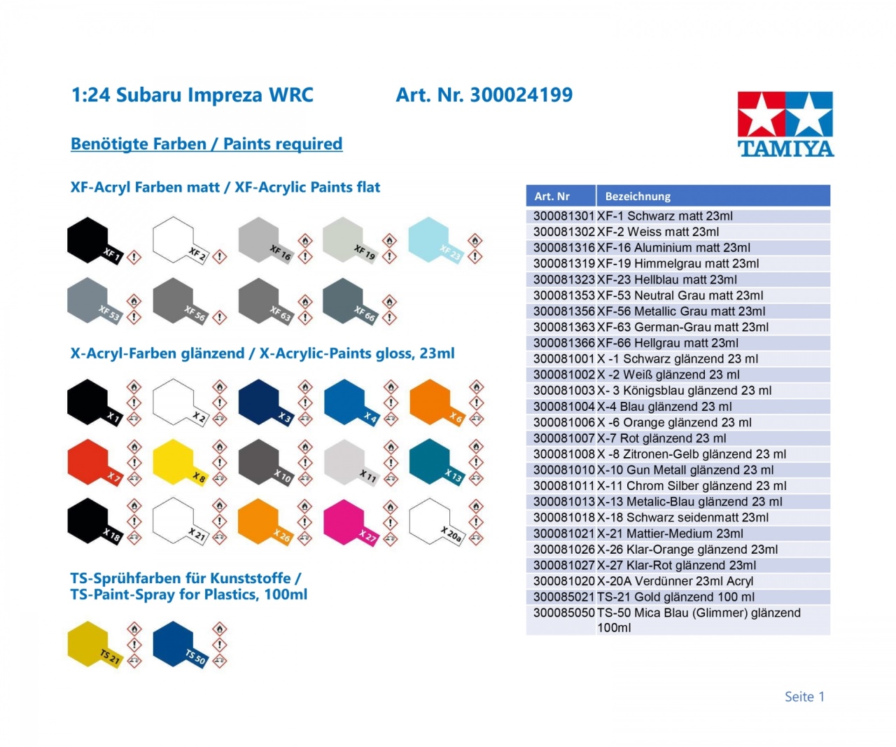 1:24 Subaru Impreza WRC 98 Tamiya 300024199