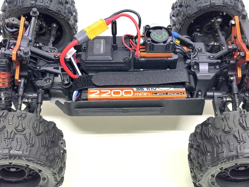 2.4GHz Fernsteuerungssystem mit einer Reichweite von bis zu 120m Brushless 35A Fahrtenregler ausgelegt für den 3S/11.1V LiPo Batteriebetrieb 2845er / 3600KV Brushless Motor 2.2kg High-Torque Servo mit Metallgetriebe (wasserdicht) 3S/11.1V 35C LiPo Batterie mit 2200mAh (Fahrzeit ca. 20 Minuten)