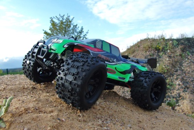 4WD-Modell Fernsteuerung 2,4 GHz Fahrakku Ladegerät 230 V mit integriertem Balancer Brushless Motor fertig montiert Brushless Regler fertig montiert 1 Servo fertig montiert Lackierte Karosserie Dekorbogen Anleitung mit Tuningliste