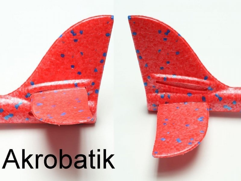 Das Höhenruder lässt sich in zwei verschiedenen Stellungen am Rumpfende einstecken - In der oberen Stellung fliegt der Tommy sensationelle Kunstflug - Loopings!