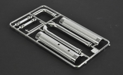 Das Bausatz-Set enthält einen verchromten Spritzling mit Befestigungsmaterial.
