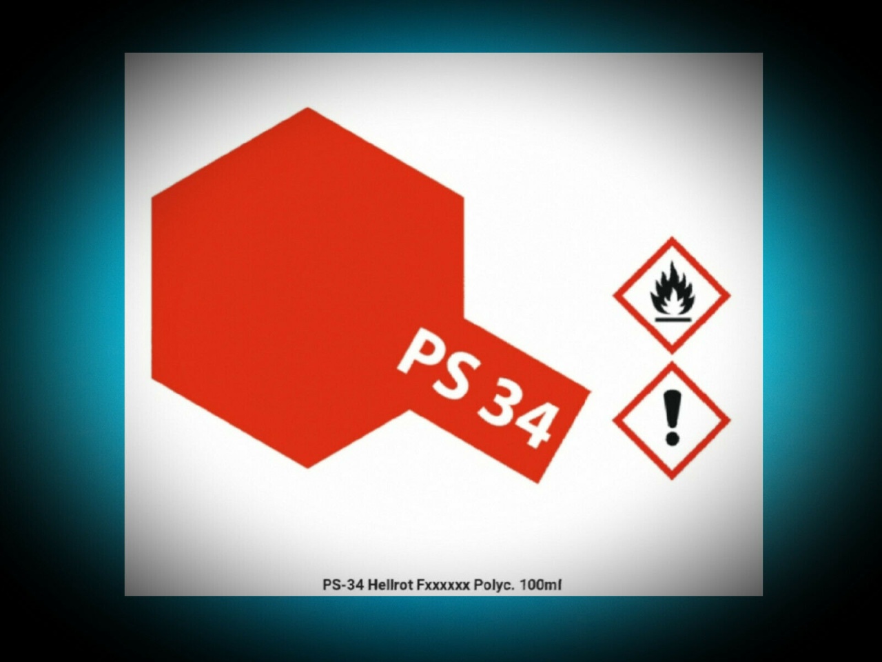 PS-34 Hellrot Lexan Sprayfarbem, 300086034 100ml, 109,90euro/1L v. Tamiya